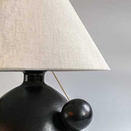 Barro Negro Lamp with Ball Pull$1,675.00 USDThis collection is shaped from clay sourced from the Sierra Madre mountains in Oaxaca. Local legend holds that the clay is blessed.