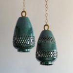 Using a red clay that comes from local mountains, the pendant lights in this collection are first given form within custom gesso molds. Emerging from the molds, the repeating openwork designs—which play on motifs that are carved in to the stone at Mitla, the neighboring archeological ruins—are meticulously cut out one by one. Each piece is then treated with a finish before entering into a final kiln firing.